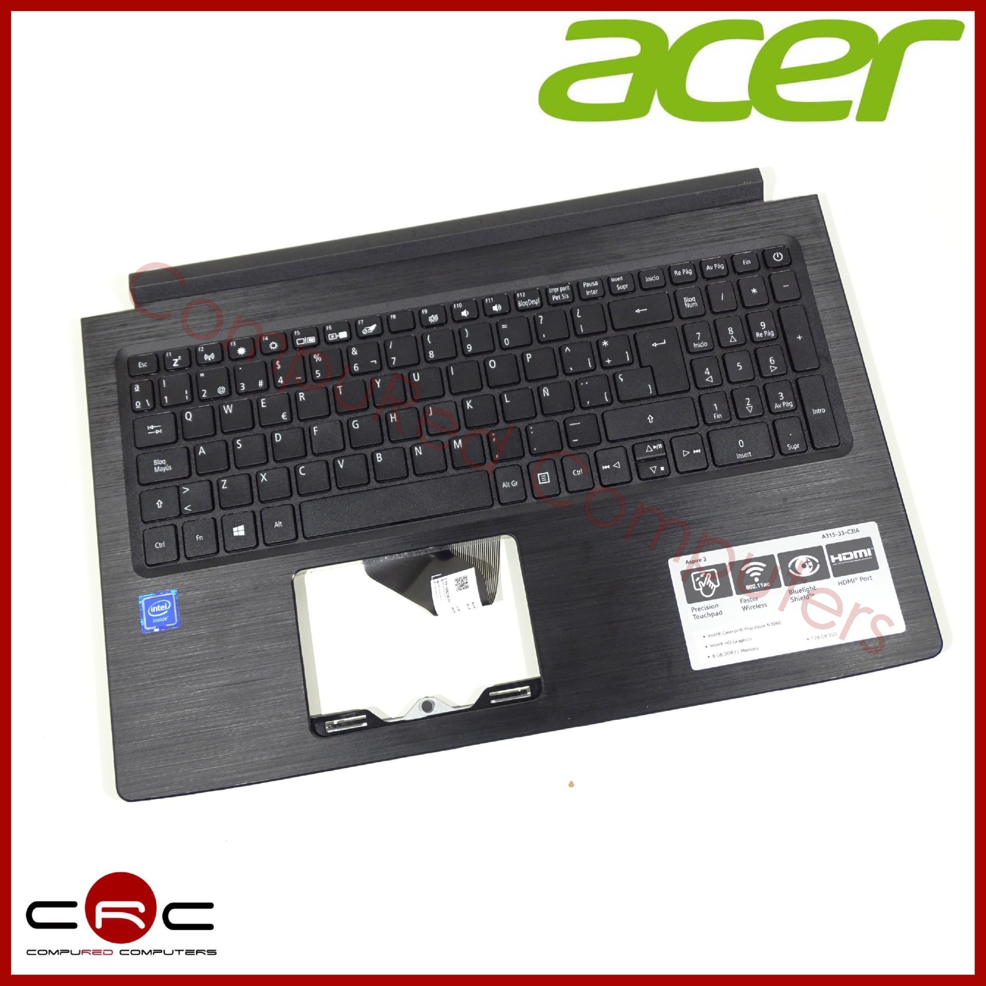 Buy the Palmrest keyboard ES Acer Aspire 3 A315-33 A315-41 A315-53 replacement at the best price at CRParts, your trusted online store specializing in laptop spare parts, laptop components, and original accessories for computers. This original used spare part is the perfect solution if you are looking for quality, compatibility, and savings for your device. In addition, we offer our professional assembly service so you don’t have to worry about a thing.
